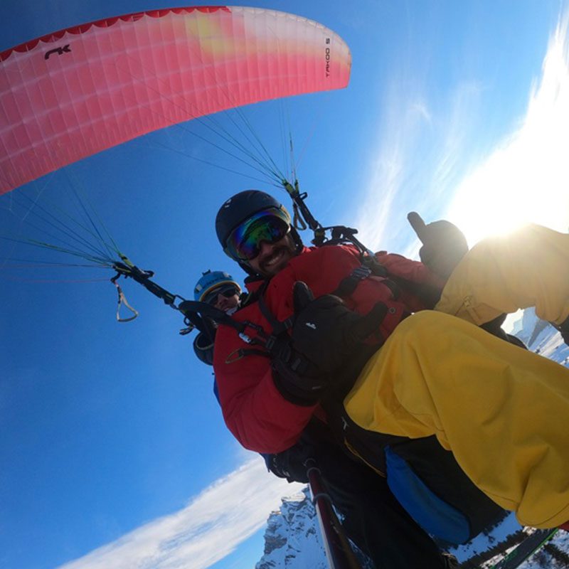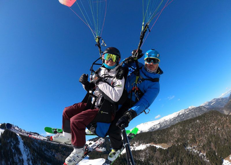 Si vous n’êtes pas à l’aise avec les skis, nous proposons également un vol accessible à pied, il vous suffit de courir quelques pas de course dans la neige pour prendre votre envol !